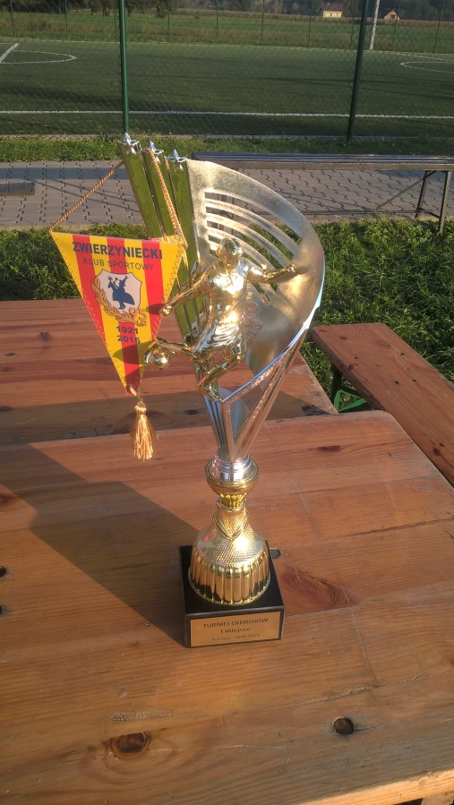 Puchar za I miejsce w turnieju. Na zdj. proporczyk KS. „Zwierzyniecki” Kraków równolatka (95 lat) BKS-u