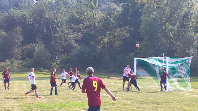 Główną, sportową częścią uroczystości był mecz piłkarski pomiędzy B-klasowym zespołem „Husarii” a drużyną BKS „Stalprodukt Oldboys” Bochnia. Spotkanie odbywało się przy udziale licznie zgromadzonej publiczności, żywiołowo dopingującej swoich zawodników. Pierwszą, historyczną bramkę na nowym obiekcie zdobył Marcin Imiołek, dając tym samym prowadzenie naszej drużynie. Na 2:0 podwyższył Marcin Leśniak, nowy „nabytek” bocheńskich oldbojów. Z upływem czasu łapczycka młodzież kilka razy zagroziła bramce strzeżonej, tym razem, przez dobrze spisującego się Adama Pawłowskiego. Efektem tego była kontaktowa bramka. W dalszej części spotkania, mimo wielu dogodnych sytuacji, naszym zawodnikom nie udało się zdobyć kolejnego trafienia, za to ambitnie grający zespół gospodarzy ustalił wynik spotkania strzelając wyrównującą bramkę w ostatniej minucie meczu.