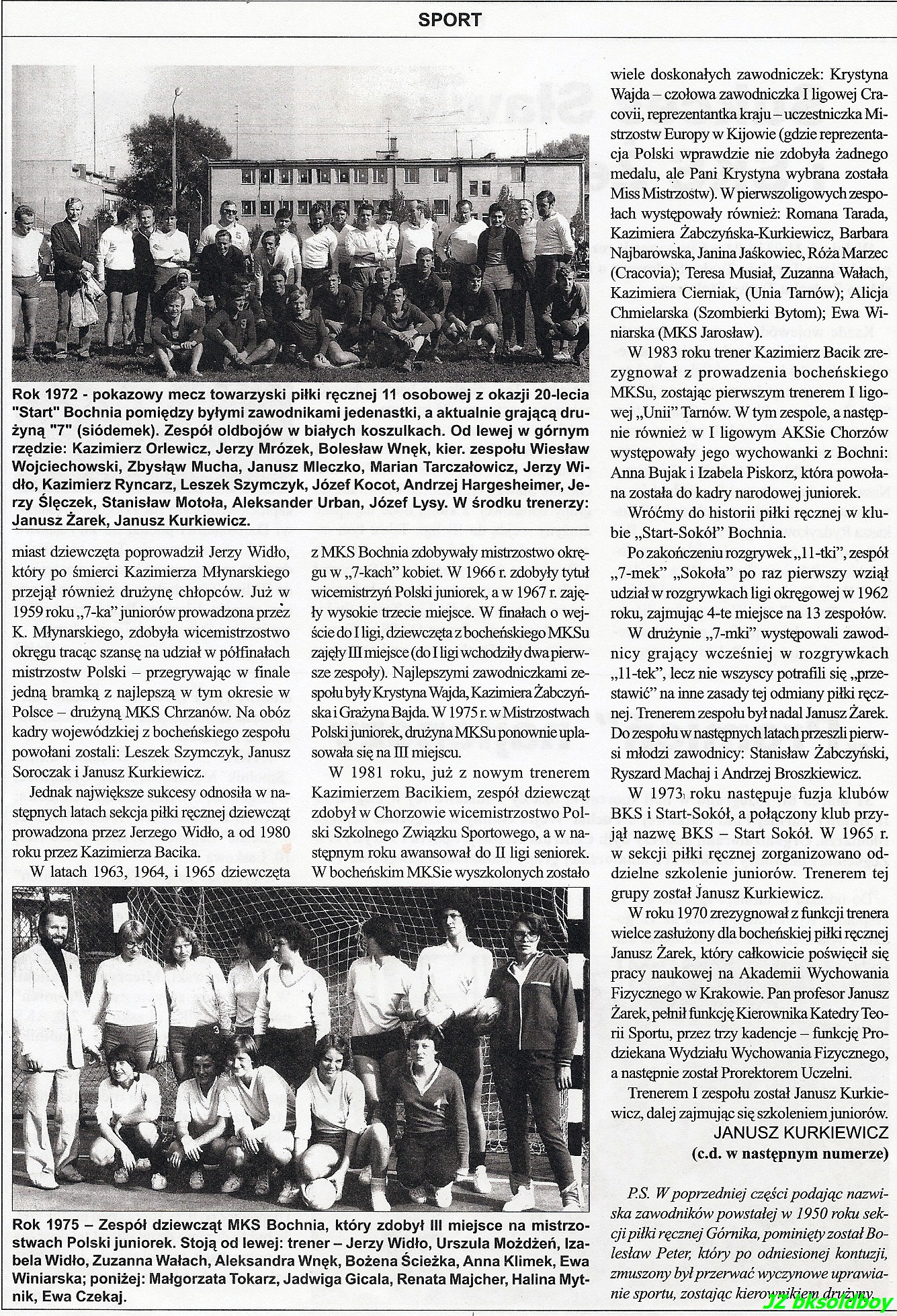 Ps. Zwracam się do byłych zawodniczek sekcji piłki ręcznej w Bochni o podzielenie się z sympatykami sportu w naszym mieście dostępną im wiedzą i fotografiami z czasów Waszej przygody z tą dyscypliną sportu. Kontakt przez FB lub pocztę elektroniczną. (JZ)