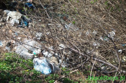 Wkrótce jednak okazało się, że wszystkich przebił i pogodził pewien solidarnościowy wybraniec na ten stołek ( z litości przemilczę nazwisko!). Ten „gigant”, wspólnie z resztą rajcowskiej elity postanowił wykorzystać zniwelowany wielkim nakładem sił i środków teren pod… wysypisko miejskich śmieci!!! Dębczańska niecka zaczęła się w szybkim tempie zapełniać różnej maści odpadami komunalnymi, nie wyłączając odpadów sanitarnych i poszpitalnych!!! Proceder ten trwał kilka lat, aż do protestów ruszyli okoliczni mieszkańcy… i był to początek końca tego wysypiska. Przestano składować odpady, a te, zwiezione już potężne ilości, starano się ukryć pod grubą warstwą ziemi. Natura zaczęła w tym dziele pomagać – wyrosłe tam chaszcze z czasem zamieniły się w dorodne krzewy, a później w wielometrowej wysokości drzewa-samosiejki. Ale wysypisko nadal żyło swoim życiem – z gnijących wciąż odpadów wyciekały na niżej położone tereny ohydne, cuchnące niebiesko-zielono-żółte ścieki… (zdjęcia poniżej)