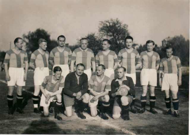 Lata pięćdziesiąte… Drużyna oldbojów BKS-u – Władysław Krupa w górnym rzędzie (czwarty od lewej)