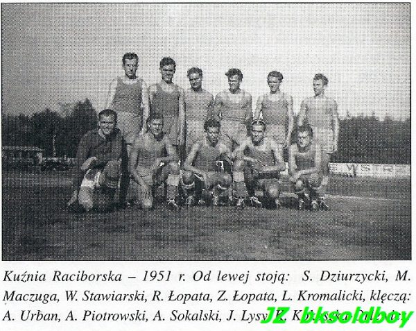 1961r. -1961r. – Drużyna piłkarzy ręcznych (11 os. – II liga) – od lewej: Józef Lysy, Stanisław Motoła, Tadeusz Hargesheimer