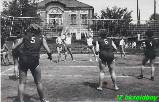 1955r. Mecz piłki siatkowej kobiet na boisku przy szybie „Sutoris”