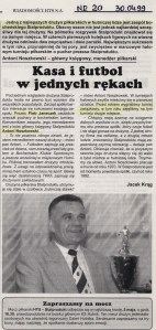 Olbrzymia ilość zebranego materiału, z oczywistych względów, nie może w całości znaleźć się na stronie blogu. Postaram się jednak, w miarę wolnego czasu, sukcesywnie wrzucać na stronę kolejne, wybrane partie zdjęć i wycinków prasowych z ostatnich kilkunastu lat. Niestety, techniczna jakość wielokrotnie przedrukowywanych materiałów, nie jest najwyższych lotów. A tak to się zaczęło – „przy okazji” uczestniczyliśmy w narodzinach zespołu przyszłego mistrza Polski w futsalu, drużyny BAUSTAL, potem już biorąc udział w trzech kolejnych turniejach przez nich organizowanych.