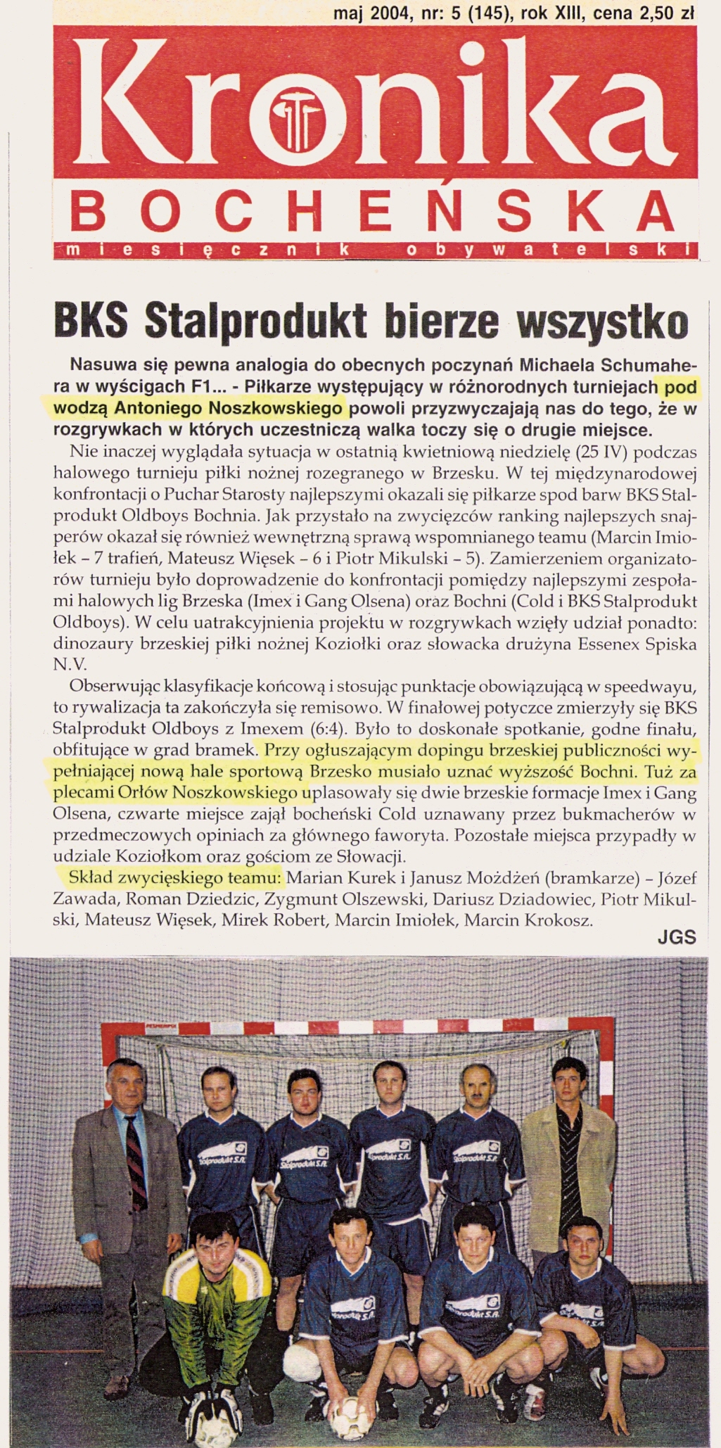 Rok 2004 – kolejny Międzynarodowy Halowy Turniej w Bochni, turnieje na Słowacji, mecze charytatywne…