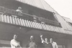 Z tarasu pensjonatu „Leśniczówka”, w którym mieszkaliśmy podczas pobytu na obozie kondycyjnym w Kosarzyskach, odwiedzin bliskich wypatrują w niedzielny poranek Tosiu Noszkowski (z lewej) i młode talenty BKS-u – od prawej Zyga Olszewski i Franek Kożuchowicz.