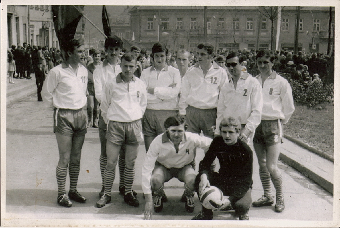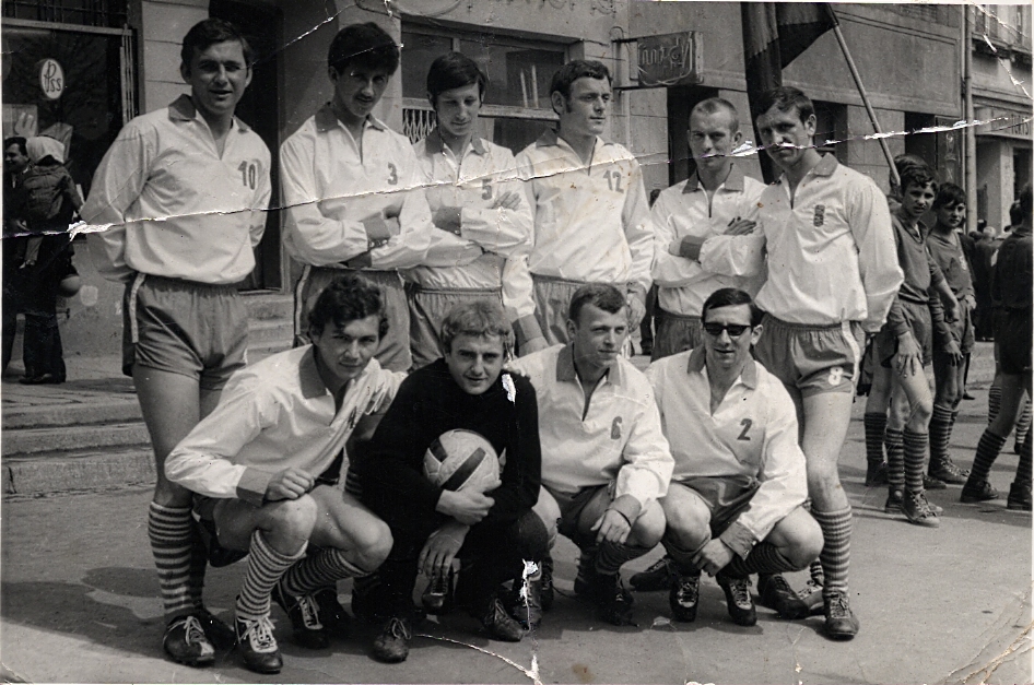 Seniorzy BKS – maj 1970 – od lewej Jurek Nosek, Józek Zawada, Tosiek Buczkiewicz, Henek Rzepecki, Włodek Władyga, Kuba Florek, Włodek Reguła, Janek Aksamit, klęczą Władek Dygutowicz i Maciek Pacuła.