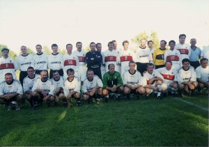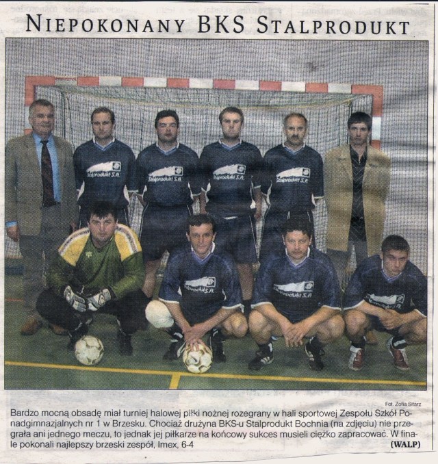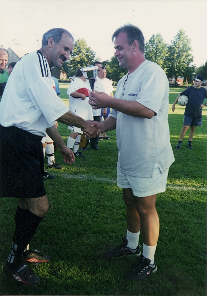 W 2000r, na turnieju w Dębnie „przytrafiło” nam się ograć śląską drużynę Pasjonat Dankowice, wicemistrza Polski Oldbojów sprzed kilku lat. Pucharek za zdobycie pierwszego miejsca był, co prawda, niezbyt okazały, za to satysfakcja ze zwycięstwa całkiem, całkiem… Autorami sukcesu byli : od lewej – Tosiu Noszkowski, Marian Kurek, Paweł Kiereś, Mirek Robert, Maciek Drzazga, Paweł Kłuś, Krzysiek Kubala, Józek Zawada, Andrzej Kumor, poniżej Kazek Skrzypek, Krzysiek Cepak, Jacek Jańczyk, Zyga Olszewski, Mietek Jańczyk, Adam Pawłowski.