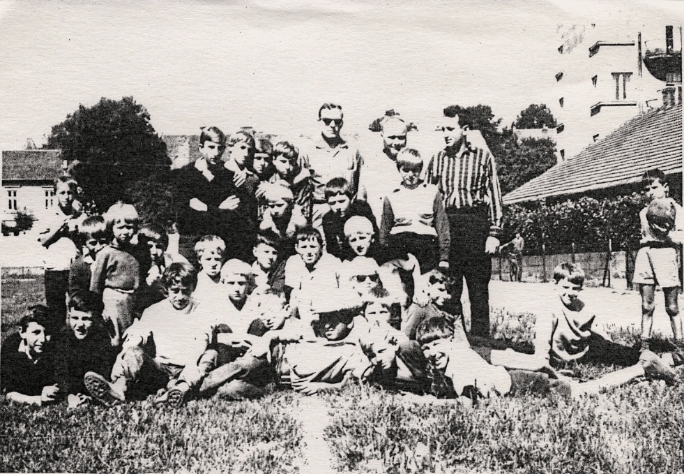 1960r. Wakacyjna półkolonia piłkarska. Z rozpoznanych na zdjęciu: J.Zawada (podparty pod boki), przed nim późniejszy bramkarz BKS-u J.Filipek, w środku trener Marian Biernat, przy nim z prawej J.Kurek, z ręką przy brodzie A.Hojnik