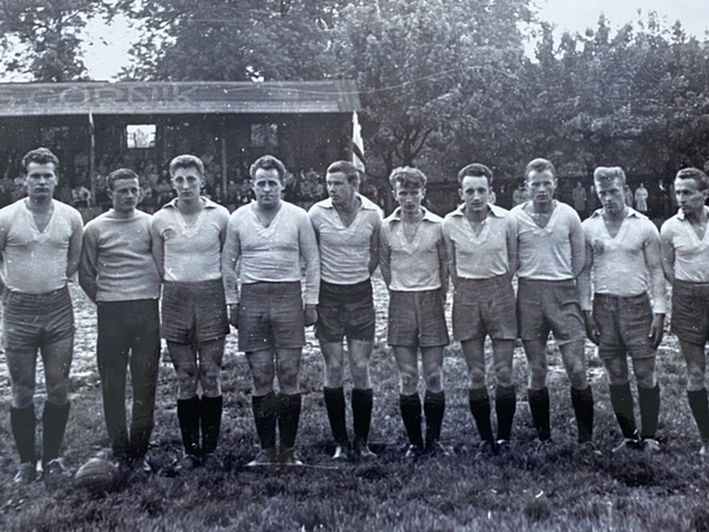 Wróciły również wspomnienia… Na górnym zdjęciu stoję z moim pierwszym trenerem Panem Marianem Biernatem (w pierwszym rzędzie drugi z lewej). Zdjęcie poniżej – wakacyjny obóz trampkarski z Marianem Biernatem 60 lat wcześniej… (ten z tyłu, najbardziej wyrośnięty, to ja)