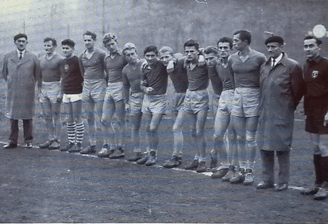 1962 r. Zespół BKS przed meczem na bocheńskim stadionie. Trzeci od lewej p.Wiesław Żabczyński…