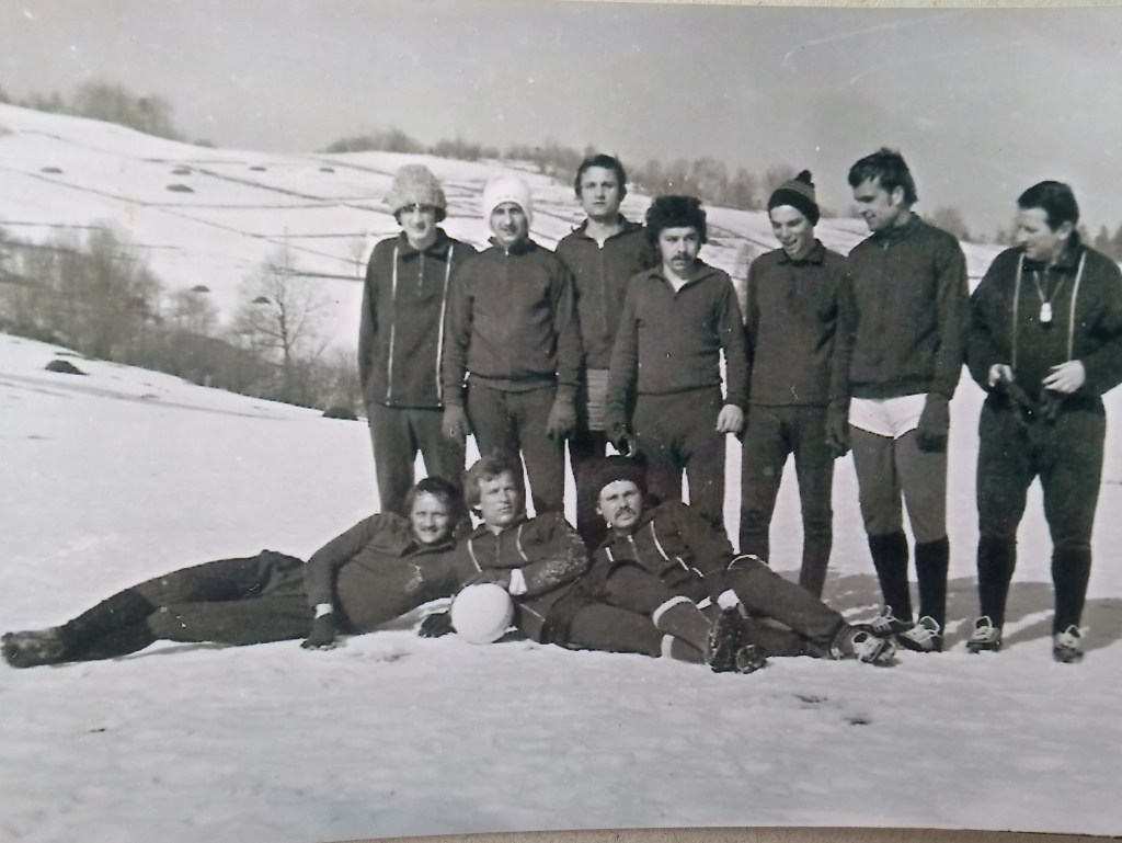 1977r. – drużyna BKS-u na zgrupowaniu zimowym w Kosarzyskach k/Piwnicznej. Pierwszy od lewej leży Janusz Międzik, obok Andrzej Sitek..
