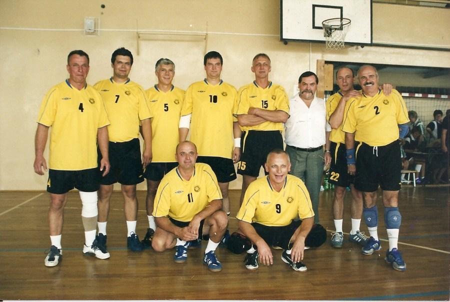 Zespół oldbojów BKS-u. Od lewej: St. Dyga, G. Wojs, (?) Konieczny, A. Wojs, R. Moneta, K. Bacik, B. Dzieża, A. Broszkiewicz, klęczą M. Haber, W. Całka